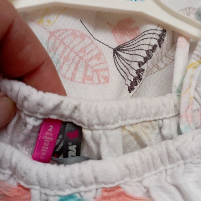 🌹2 ans 🌹 Orchestra 🌹Robe imprimé de couleurs pastelles 🌿🌿, volant sur la poitrine avec petit croquet a pompon rose, taille élastique 🌹 Printemps été #doudou19230_23mois_2ansfille