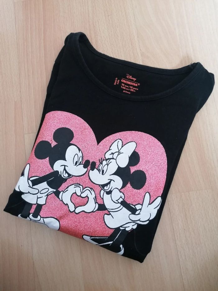 🥀 10 ans 🥀 Disney Minnie Orchestra 🥀 T-shirt manches longues noir dessin pailleté 🥀 Juste lavé, neuf jamais porté #doudou19230_10ansfille