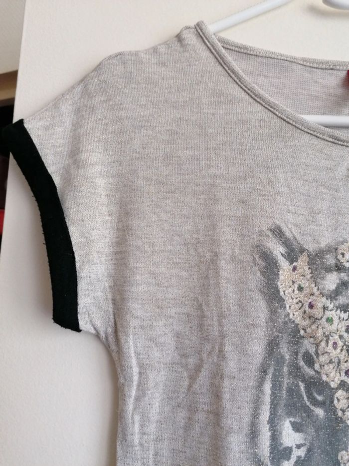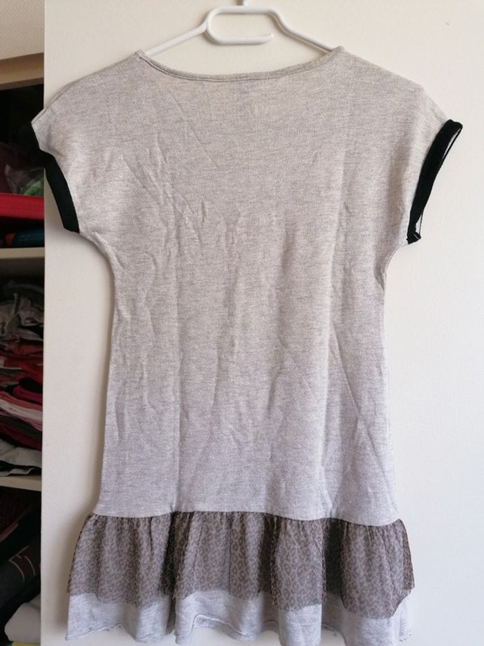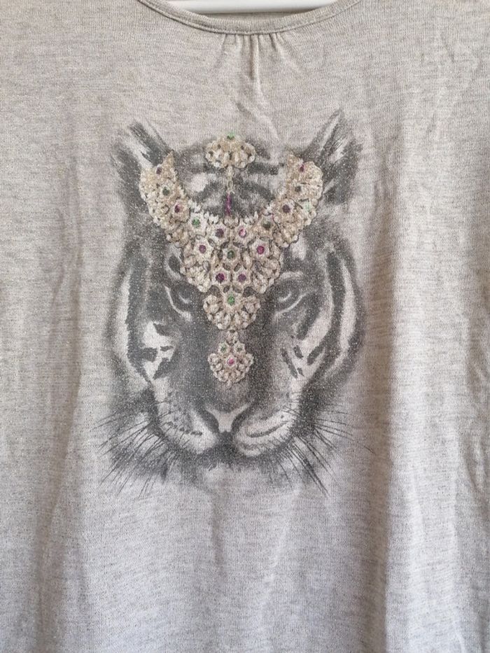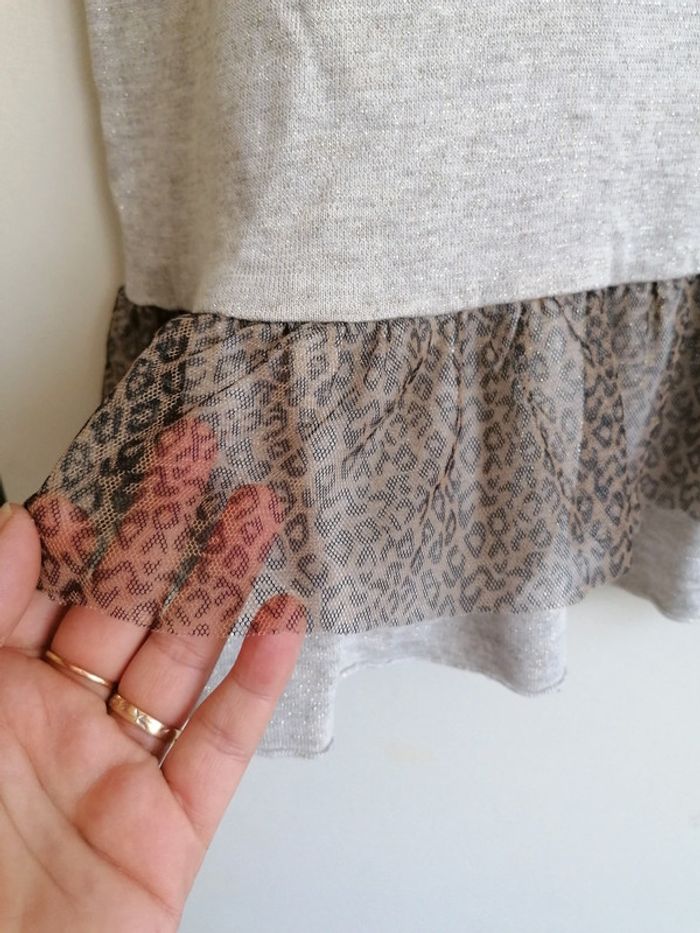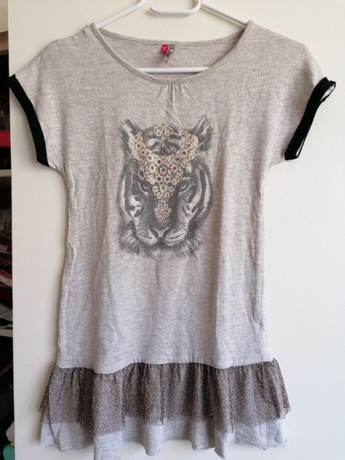 🌺 12 ans 🌺 Orchestra 🌺 Tunique manches courtes imprimé tête de tigre 🐯🐯, volants sur le bas, fond gris pailleté doré #doudou19230_12ansfille