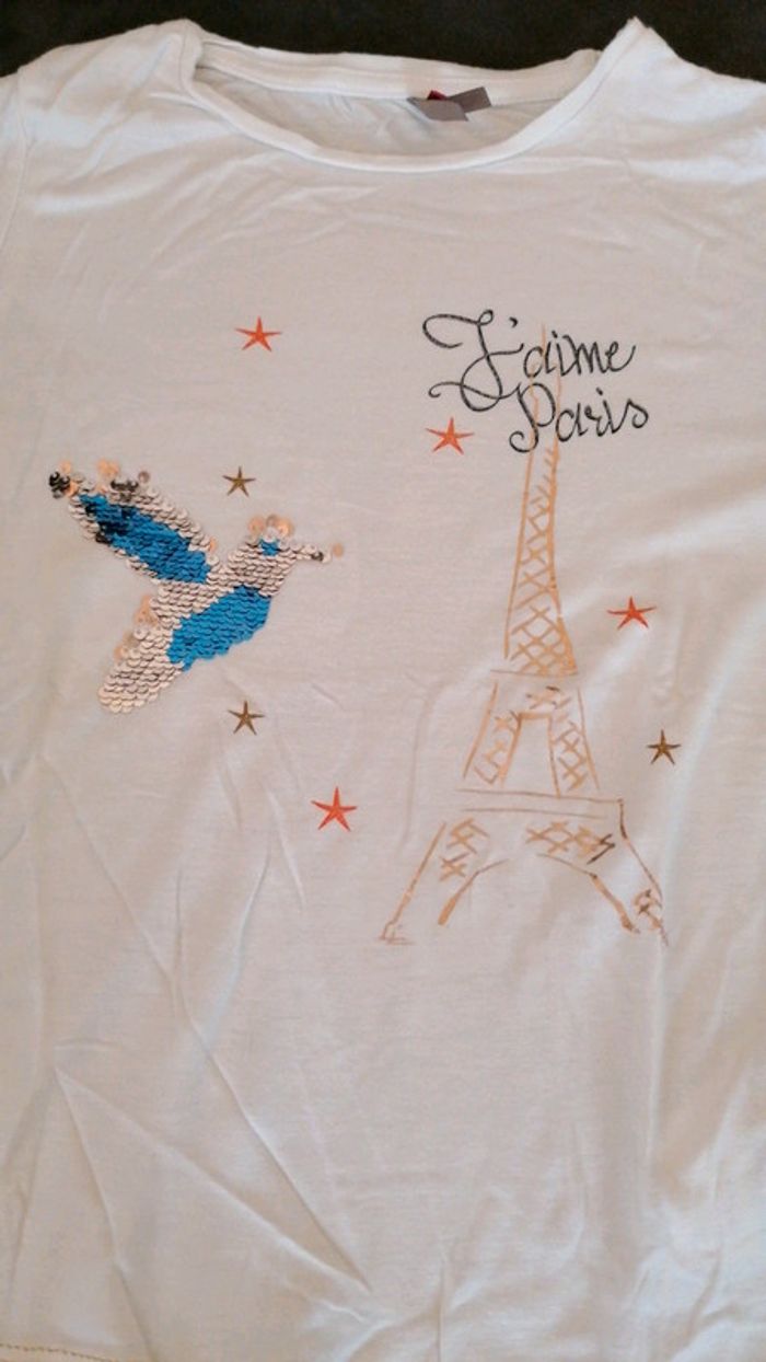 🌺 Orchestra 🌺 8 ans 🌺 Thème dressy day 🌺 T-shirt ML avec u' oiseaux en sequins, dessins en or 🌺 T-shirt allant avec la magnifique robe rouge. 🌺Automne /hiver #doudou19230_8ansfille