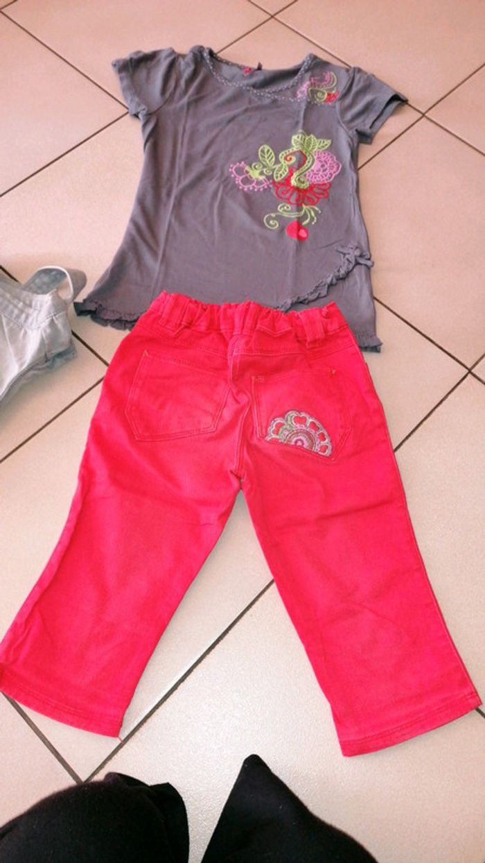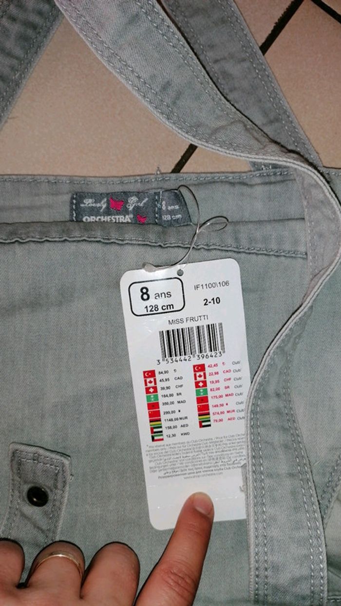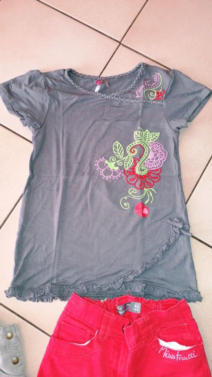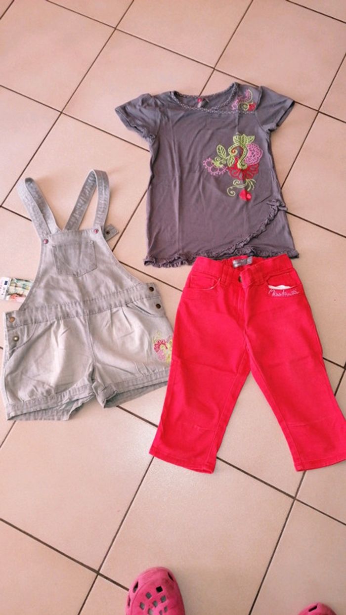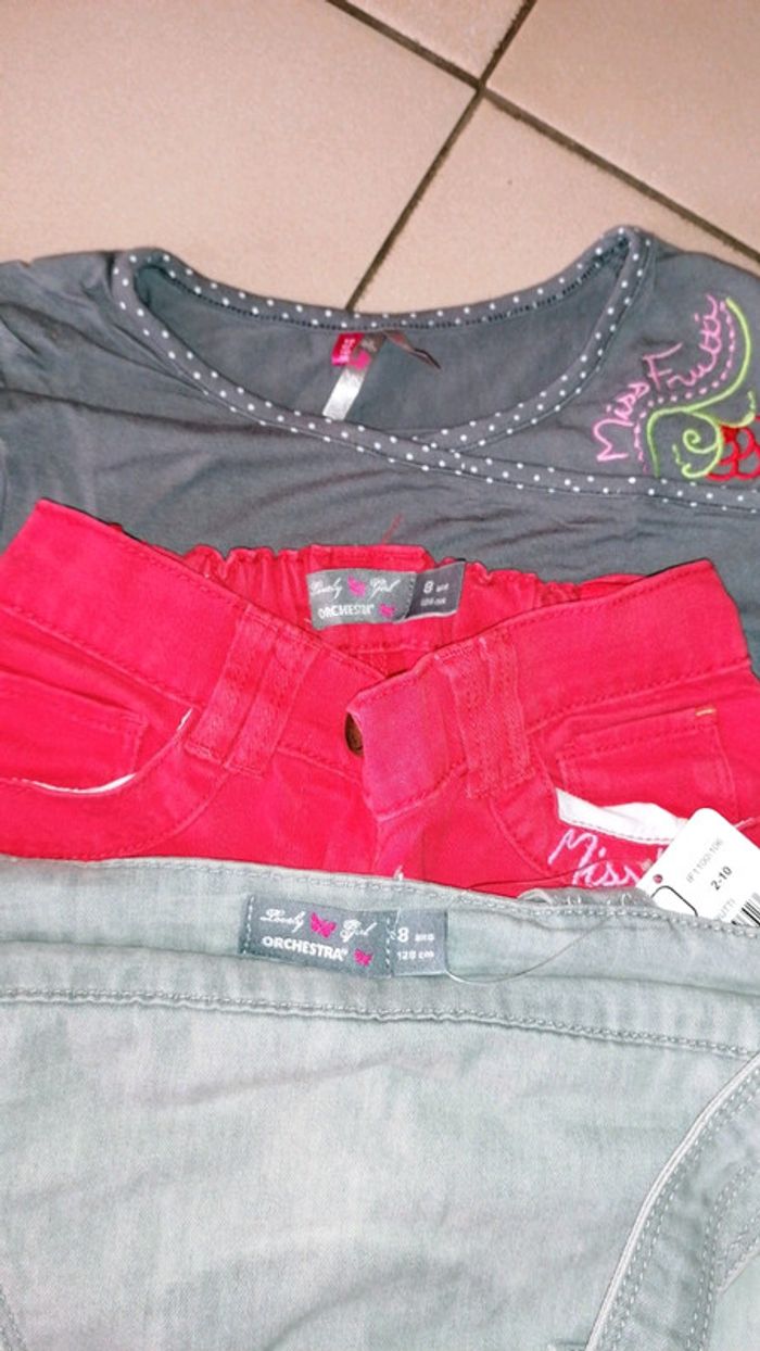 🌺 Orchestra 🌺8/10 ans 🌺 Ensemble composé de 3 pièces - T-shirt mc 10 ans micro trou voir photo - Pantacourt donné tache voir photo 8 ans - Salopette 8 ans neuve avec étiquette, prix d'achat 14.48 🌺 Thème miss frutti 🌺 Couleur gris délavé, gris foncé, rouge #doudou19230_8ansfille