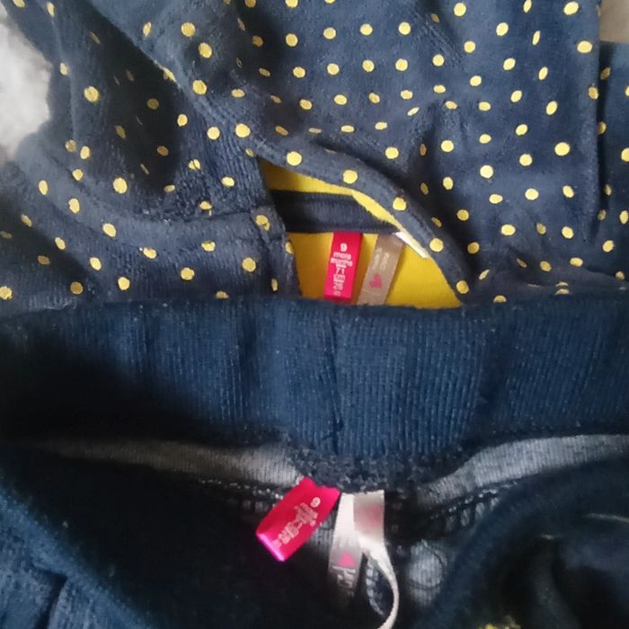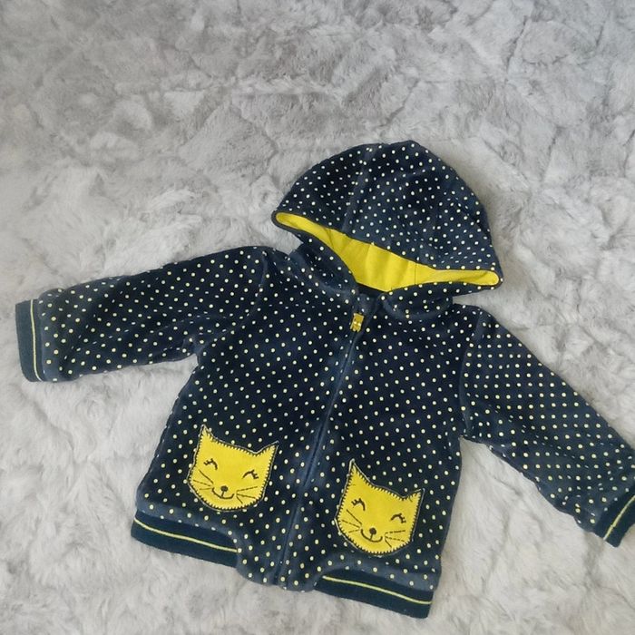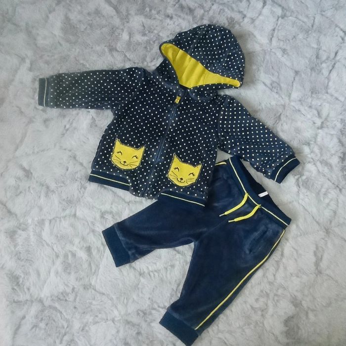 🌹9 mois 🌹 Orchestra 🌹 Ensemble pantalon et veste en velours, chaud, pantalon taille élastique et lien de serrage, veste zippée en velours bleu marine avec points, capuche, petite ms poches en forme de tête de chat 🐱🐱 🌹 Automne hiver #doudou19230_9moisfille