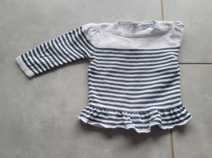 Pull style marinière, avec froufrou sur le.bas, de la marque Vertbaudet, taille 18 mois (81 cm), en très bon état. Article lavé pour la vente. #18moislae72