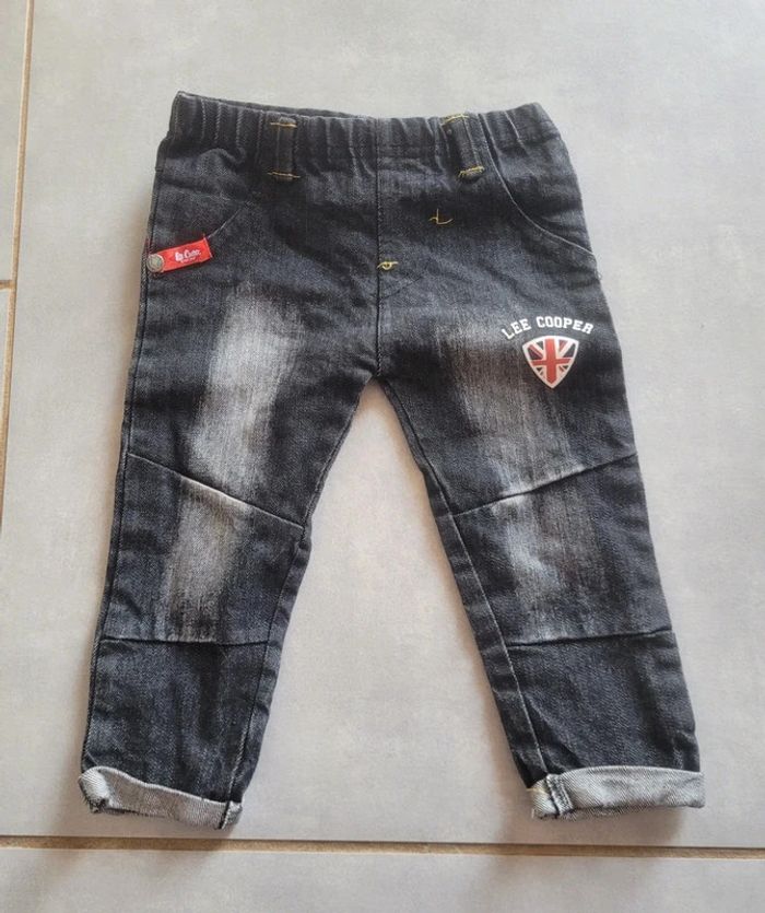 Jean de couleur noir, effet légèrement délavé, de la marque Lee Cooper, taille 12 mois, en très bon état. Article lavé pour la vente. #12moislae72