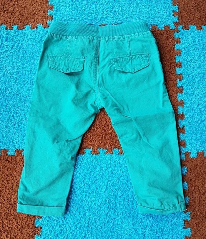 Pantalon léger vert, Gémo, taille 12 mois (74 cm), très bon état. Article lavé pour la vente. #12moislae72