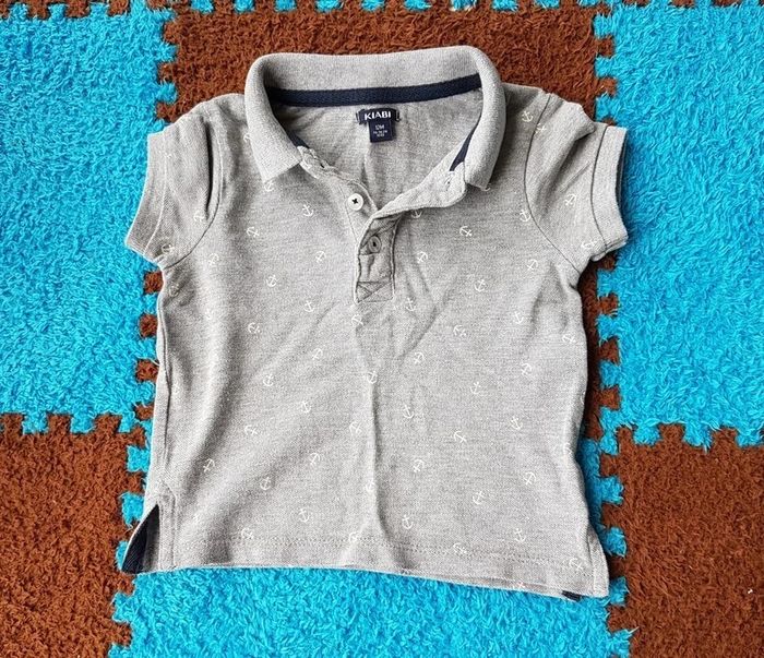 Polo gris avec petits motifs d'ancre, Kiabi, taille 12 mois (74 cm). Très bon état. Article lavé pour la vente. #12moislae72