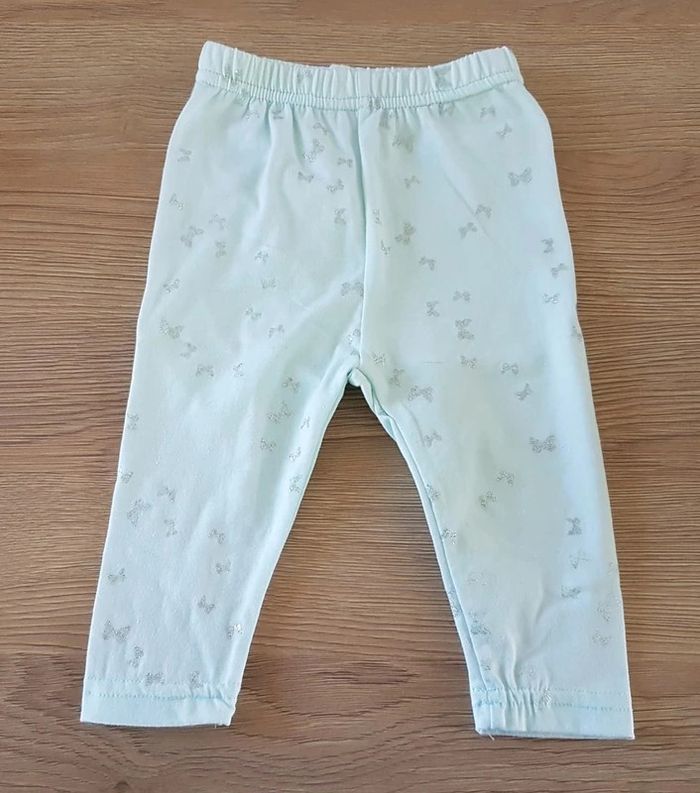 Legging, de couleur menthe avec papillons argentés, de la marque Barbouillage, taille 6 mois, en très bon état. Article lavé pour la vente. #6moislae72