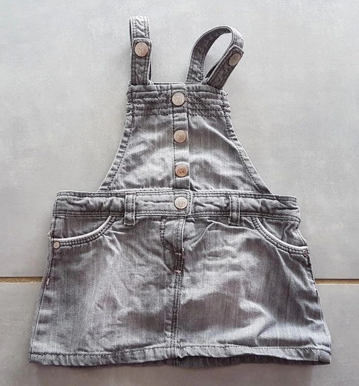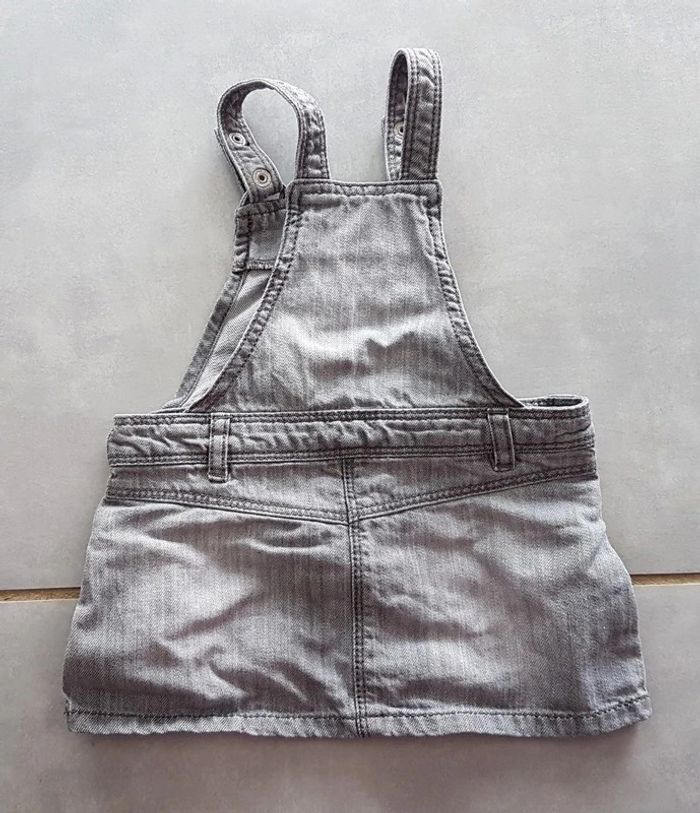 Salopette jupe en jean, de couleur grise, de la marque In Extenso, taille 6 mois (68 cm), en très bon état. Article lavé pour la vente. #6moislae72