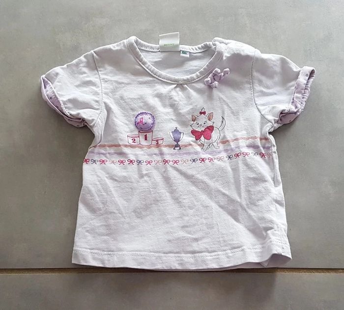 T-shirt manches courtes, blanc avec motif Aristochat, de la marque Disney, taille 6 mois, en très bon état. Article lavé pour la vente. #6moislae72