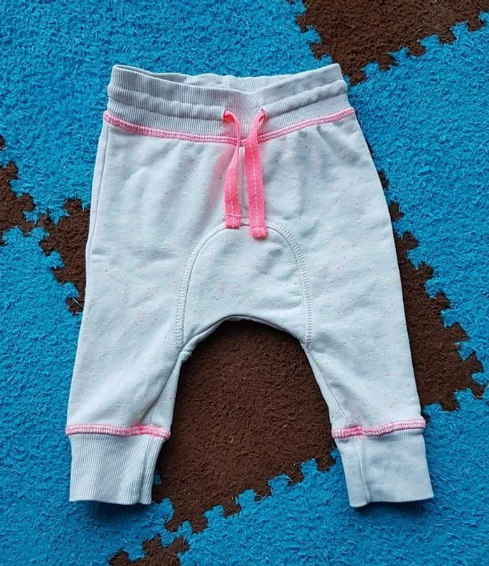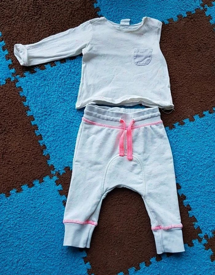Ensemble t-shirt ML et sarouel, blanc moucheté fluo, de la marque H&M, taille 4-6 mois, en très bon état. Article lavé pour la vente. #6moislae72