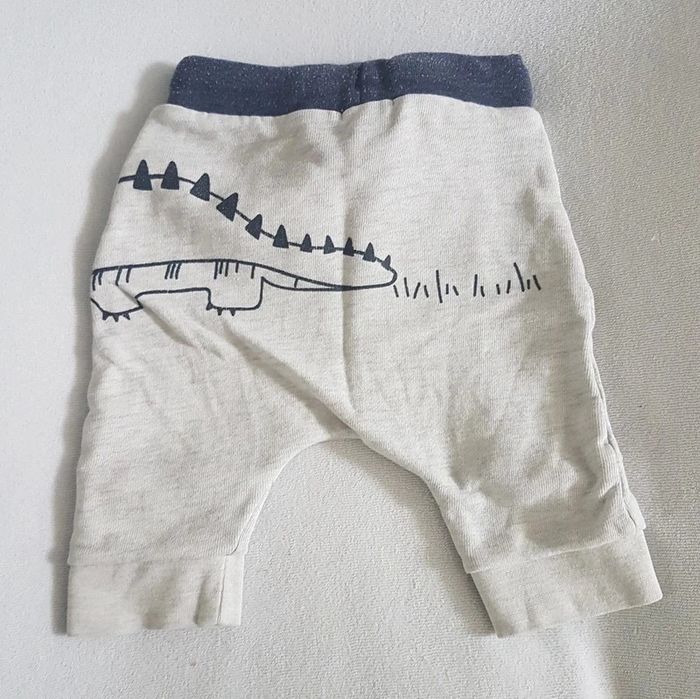 Pantalon de jogging, de couleur gris et marine avec motif crocodile, de la marque Kiabi, taille 3 mois (56-62 cm), en très bon état. Article lavé pour la vente. #3moislae72