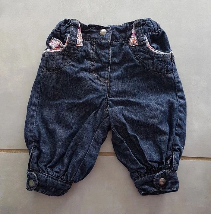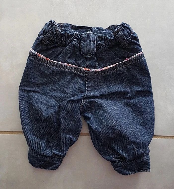 Jean avec pieds resserrés, de la marque Vertbaudet, taille 3 mois (60 cm), en très bon état. Article lavé pour la vente. #3moislae72