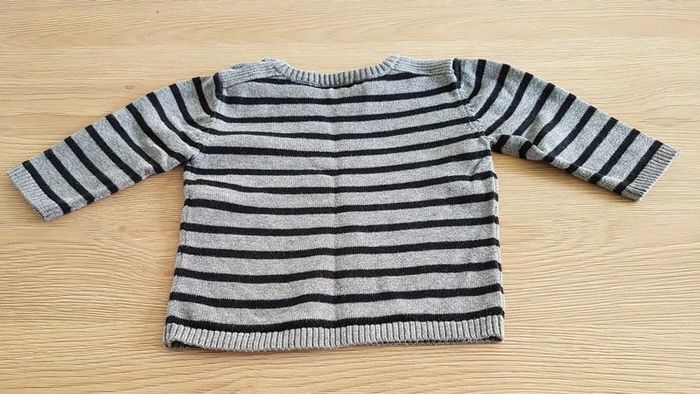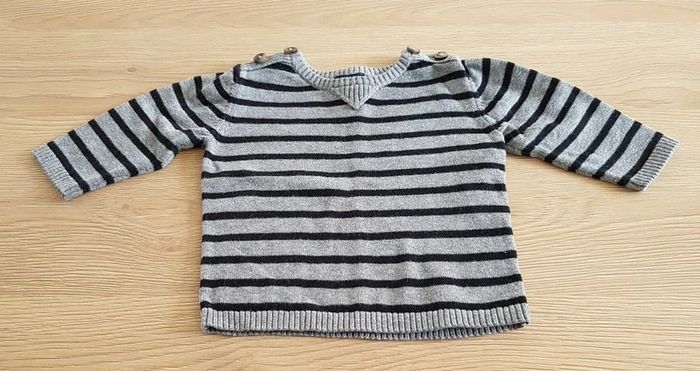 Pull, Kiabi, gris rayé noir style marinière, taille 3 mois (62 cm), très peu porté. Article lavé pour la vente. #3moislae72