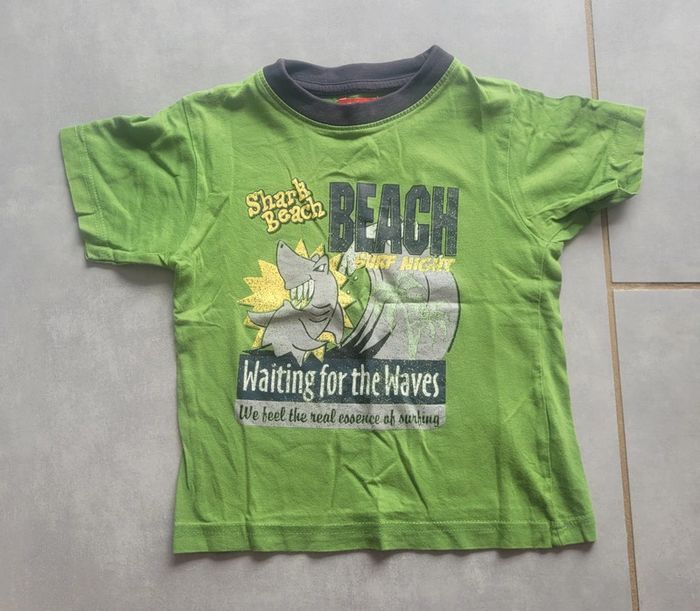 T-shirt manches courtes, de couleur vert, avec motif, de la marque Tissaia, taille 4 ans, en très bon état. Article lavé pour la vente. #4anslae72