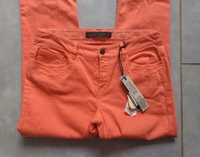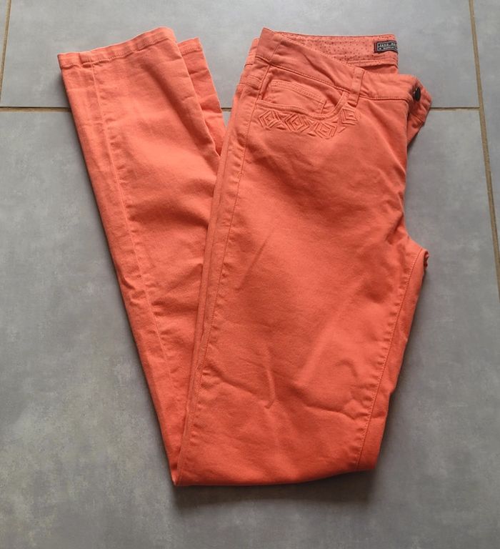 Jean slim, de couleur corail, de la marque IKKS, taille 28 (équivalent 38), neuf, étiqueté. Vendu neuf à 95€ #38lae72