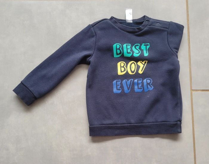 Sweat de couleur marine, avec inscription colorée, de la marque C&A, taille 3 ans (92 cm), légères bouloches, mais pour moi reste en très bon état. Article lavé pour la vente. #3anslae72