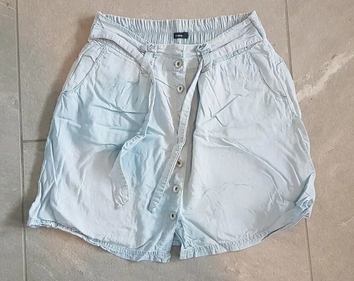 Jupe en jean fluide, avec boutons sur l'avant et fausses poches a l'arrière, de la marque In Extenso, taille M, en très bon état. Article lavé pour la vente. #38lae72