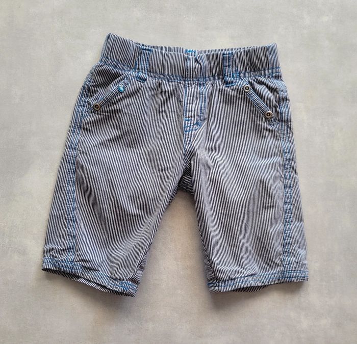 Short de couleur blanc rayé marine, de la marque Alphabet, taille 23 mois, en très bon état, juste etiquette de nom restée. Article lavé pour la vente. #24moislae72
