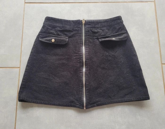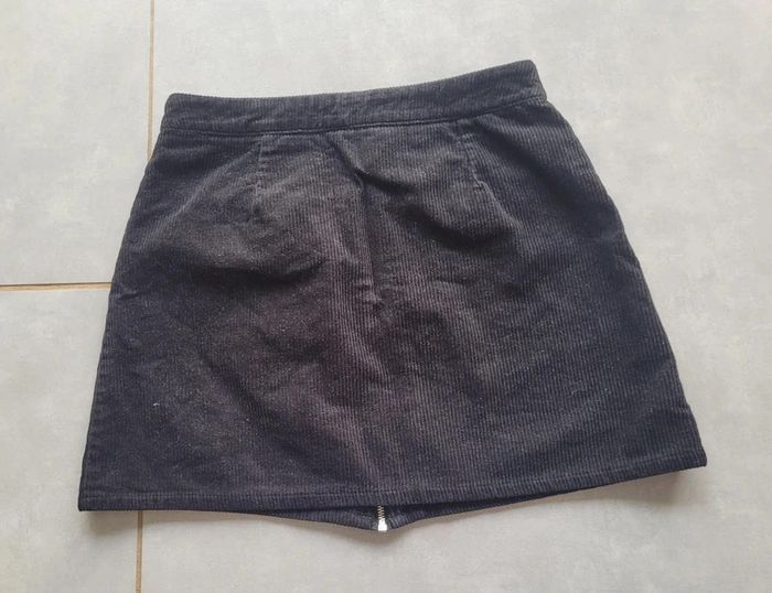 Jupe effet velours, fausses poches, de couleur noire, de la marque Jennyfer, taille S, en très bon état. Article lavé pour la vente. #36lae72