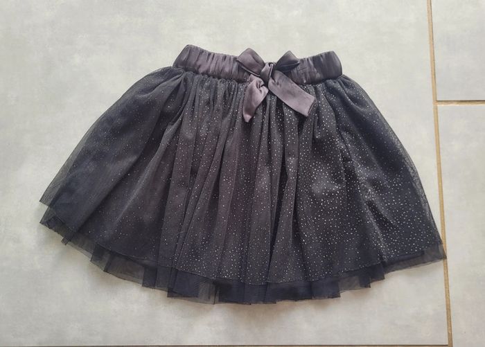 Jupe de couleur noire à pois argentés, avec petit noeud au niveau de la ceinture, de la marque Tex, taille 2-3 ans, en très bon état. Article lavé pour la vente. #3anslae72