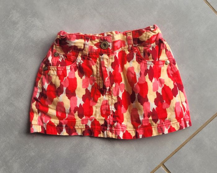 Jupe en jean, assez légère, dans les tons rouge, taille 3 ans, en très bon état. Article lavé pour la vente. #3anslae72