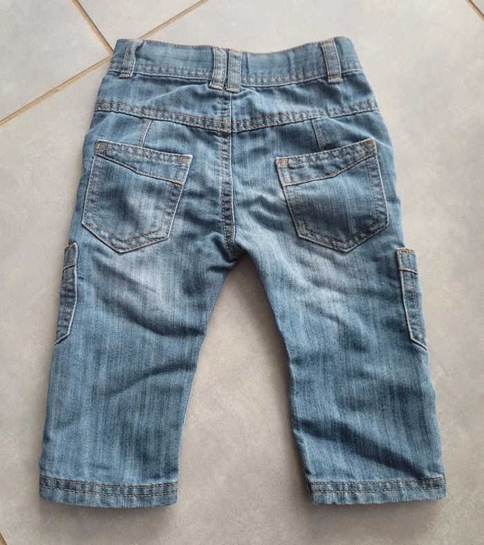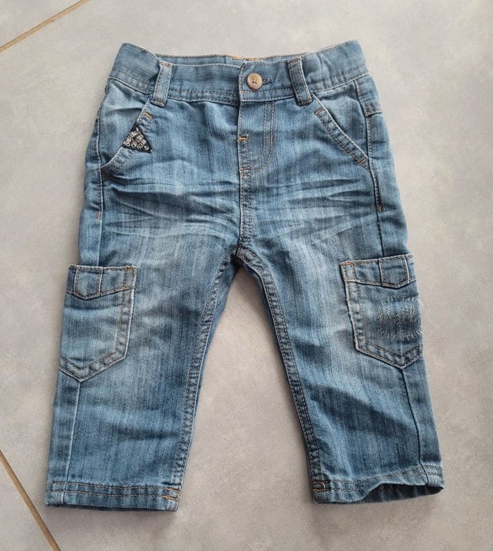 Jean de couleur bleu, de la marque Tape à l'œil, taille 12 mois (74 cm), en très bon état. Article lavé pour la vente #12moislae72