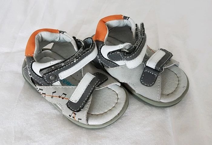 Sandales grises, taille 18, de la marque Freemouss, en très bon état. Article lavé pour la vente.