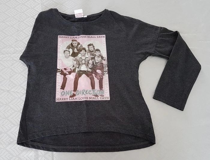T-shirt ML, gris foncé des One Direction. Marque: 1D Media Taille 12 ans. Article lavé pour la vente #12anslae72