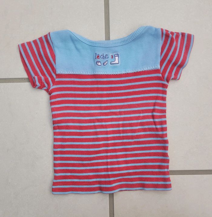 T-shirt manches courtes, de couleur bleu clair et rouge, de la marque Mini Stéréo, taille 3 ans, en très bon état. Article lavé pour la vente. #3anslae72