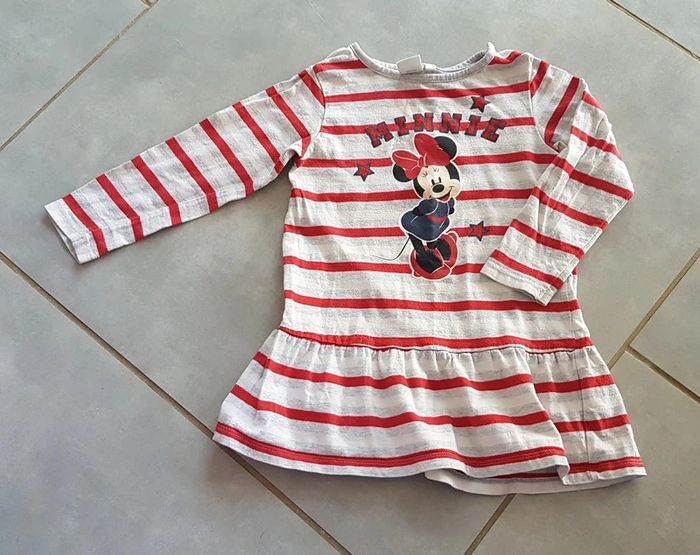 Tunique rayée gris, blanc et rouge, avec motif Minnie, de la marque Disney, taille 36 mois, en très bon état. Article lavé pour la vente. #36moislae72