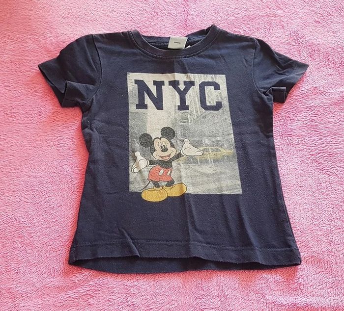T-shirt manches courtes, marine avec dessin Mickey, de la marque Disney, taille 2 ans, en très bon état. Article lavé pour la vente. #24moislae72