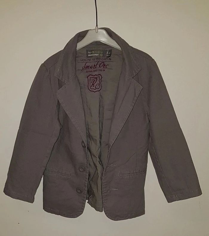 Veste style costume, de couleur grise, de la marque Orchestra, taille 2 ans (92 cm), en très bon état. Article lavé pour la vente. #24moislae72
