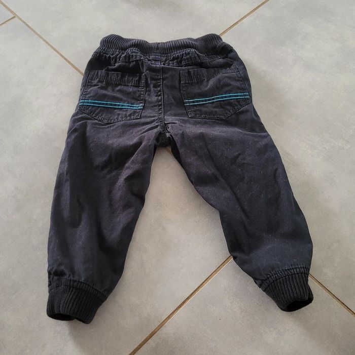 Pantalon doublé, de couleur noir avec détails bleu, de la marque Lupilu, taille 18-24 mois (92 cm), en très bon état. Article lavé pour la vente. #24moislae72