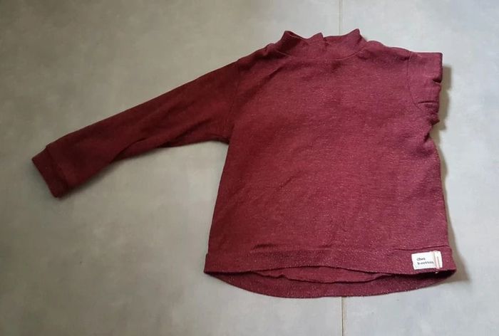 T-shirt manches longues, de couleur bordeaux, de la marque Zara, taille 12-18 mois (86 cm), en très bon état. Article lavé pour la vente. #18moislae72
