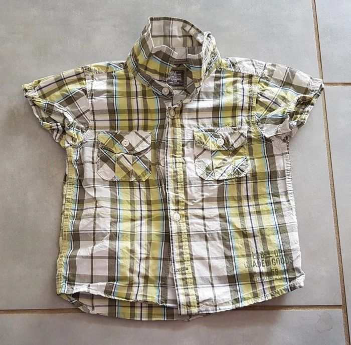 Chemise manches courtes, dz couleur verte et blanche, de la marque L.O.G.G, taille 18 mois (86 cm), en très bon état. Article lavé pour la vente. #18moislae72