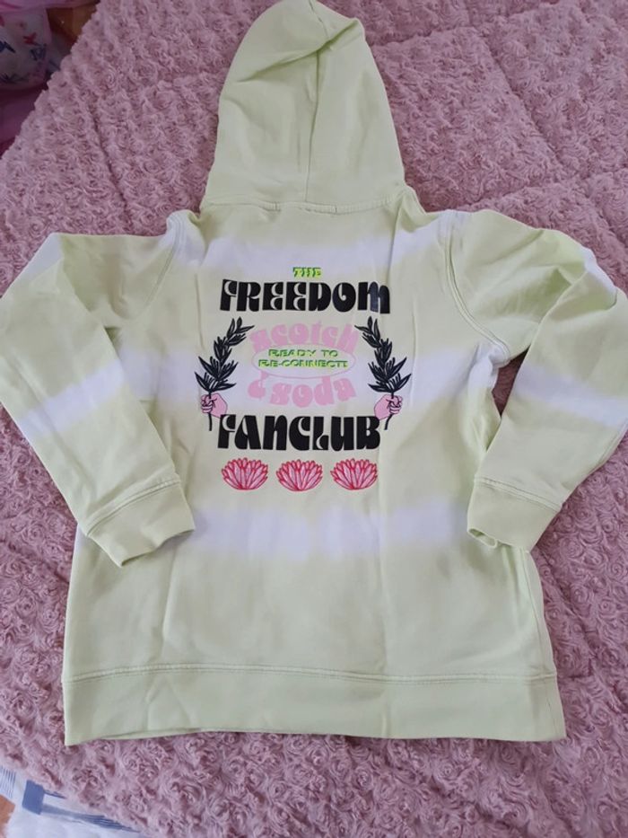 Tie and die, idéal printemps, à capuche, 2 vraies poches. Excellent état. Acheté 59 euros, pas d'offre dérisoire s'il vous plaît.