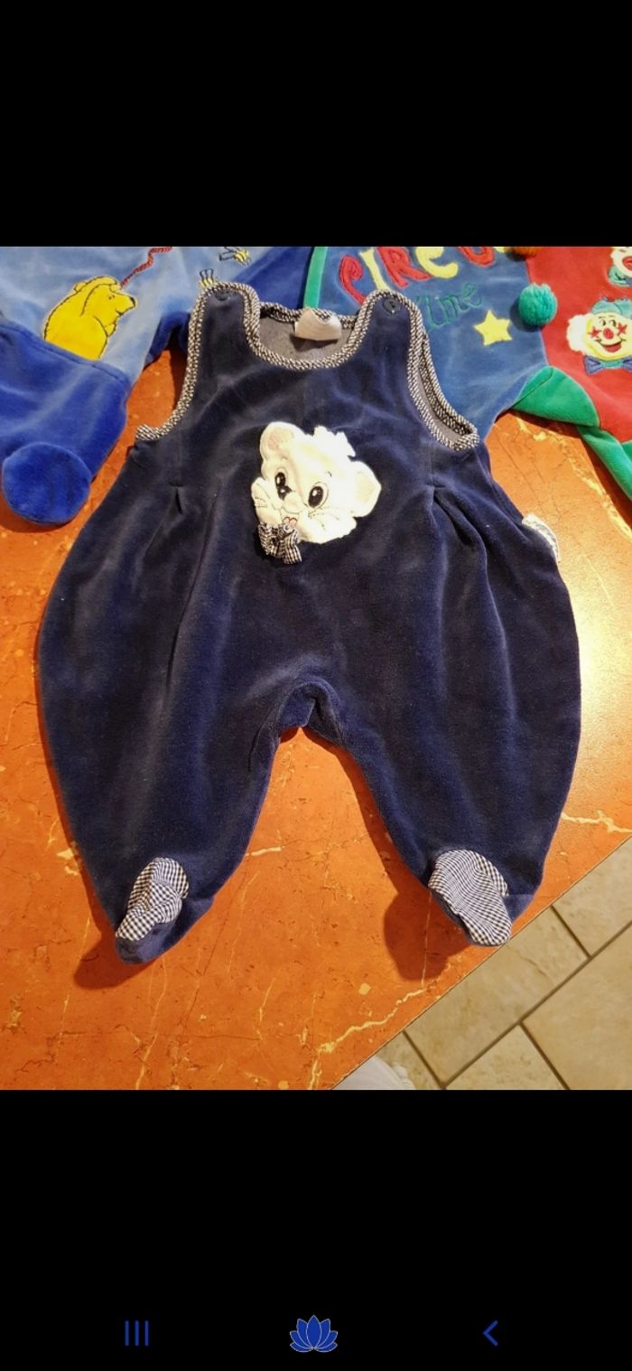 Lot de 3 pyjamas en velours avec pieds. Sans manches. Boutonnés à l encolure