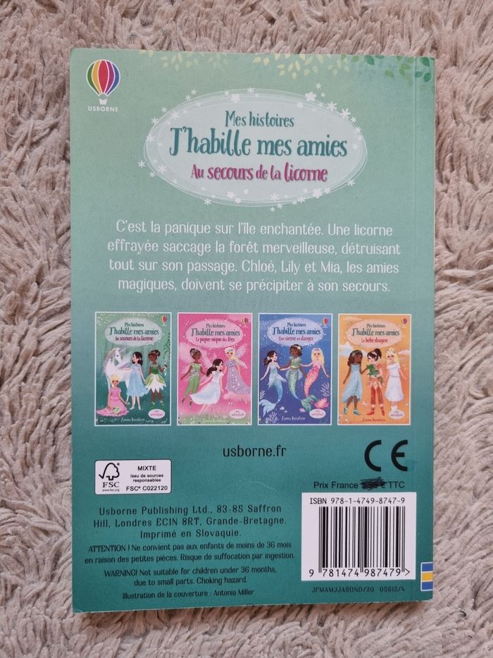 Livre de la collection "J'habille mes amies" au secours de la licorne. Livre en très bon état
