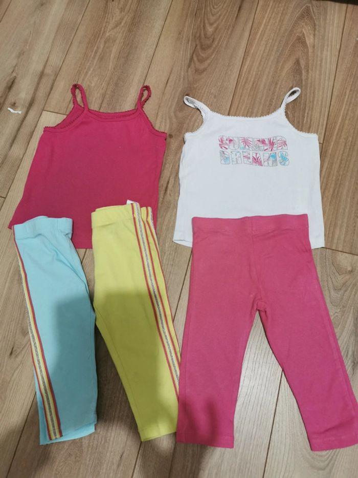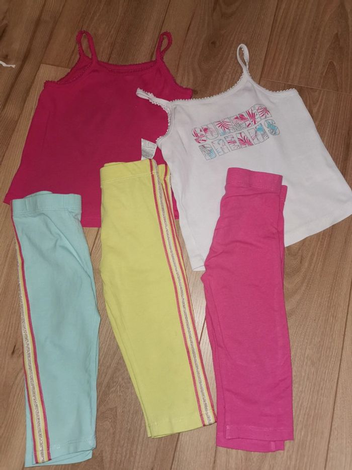 Ensemble été 2 débardeurs la halle et 3 leggings 3/4 3 ans neufs - photo numéro 2