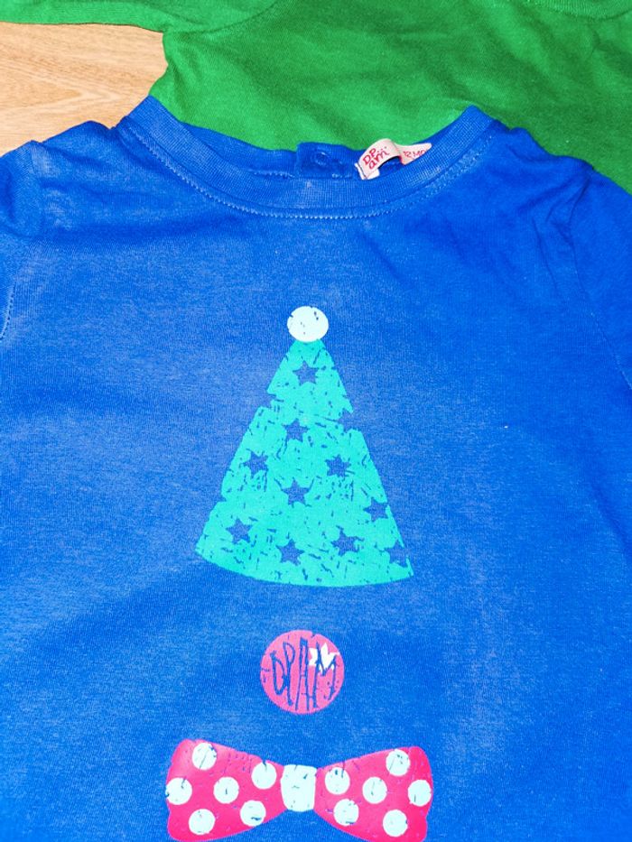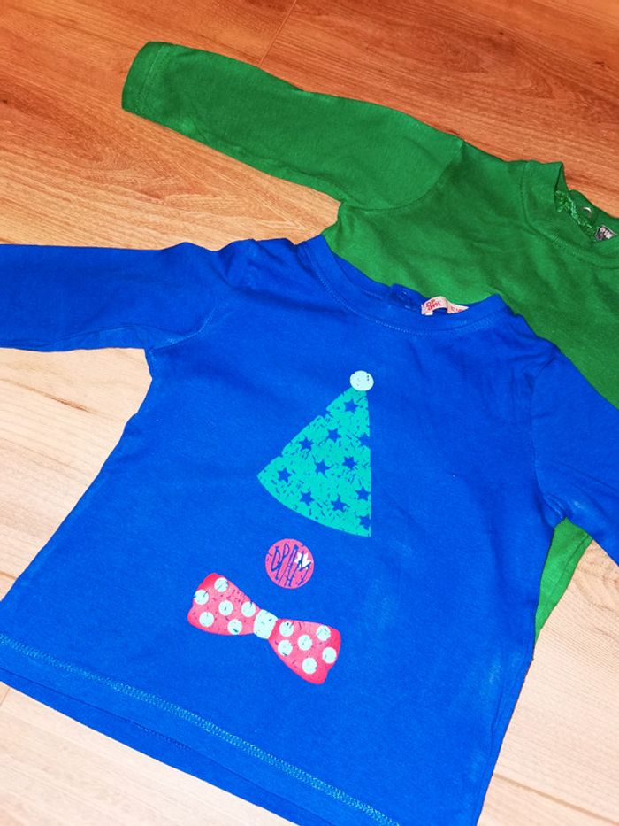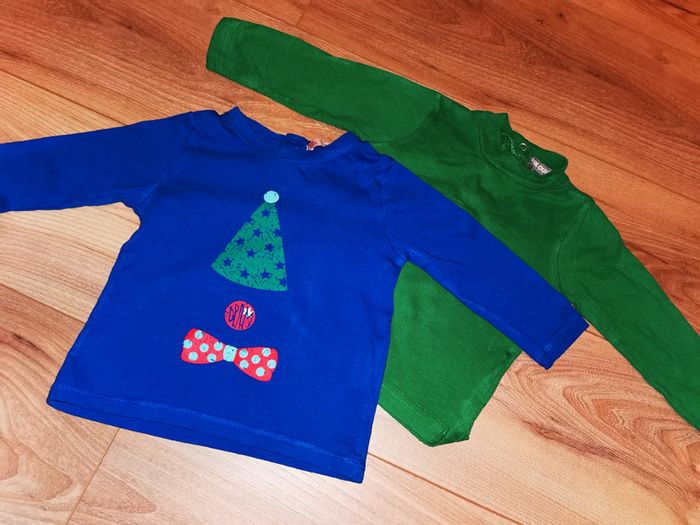 Lot 2 t shirts Noël garçon ou fille 12 mois super état Ce sont les fêtes adoptez le look Noël 🤶 pour l'occasion. Noel est revenu motif sapin nœud 🎀 🎄🎉🎄😊👍 Bébé sera mimi Taille bien