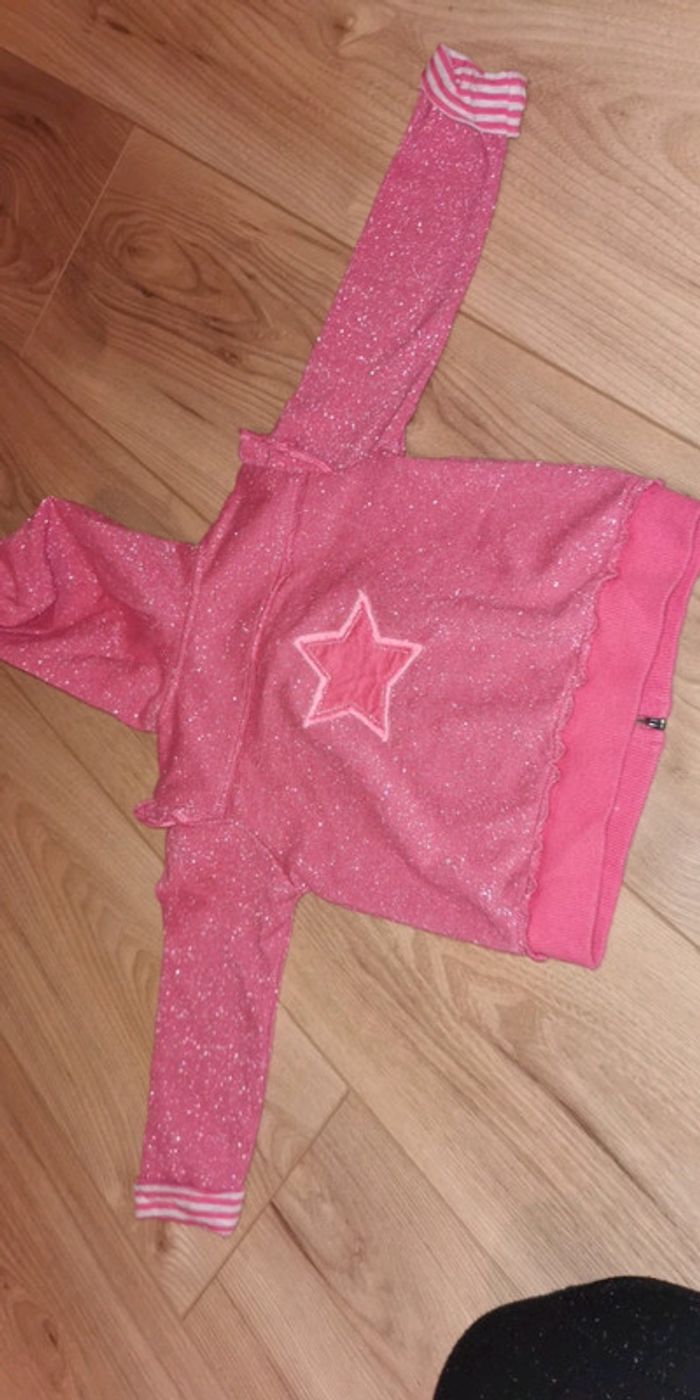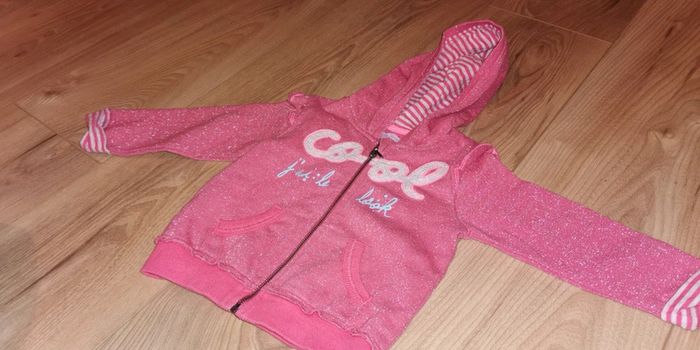 Taille bien Gilet à capuches sweat gemo 12 mois comme neuf Écrit cool j'ai le look Brillant pailleté paillettes Dos avec étoile super à porter