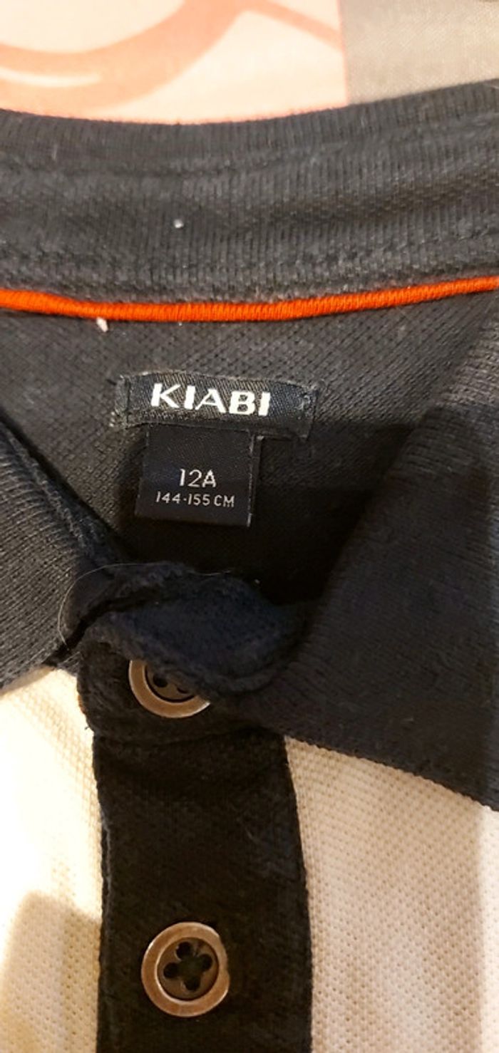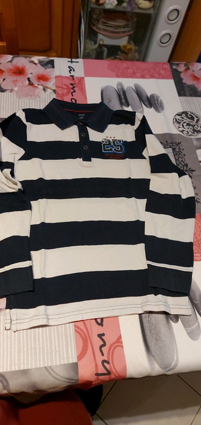 Polo manches longues rayé bleu/ blanc, taille 12 ans, marque Kiabi