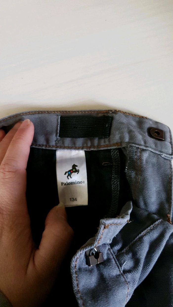 Pantalon garçon gris, taille 134, porté 2/3 fois, état quasi neuf . Ajustement élastique sur les côtés