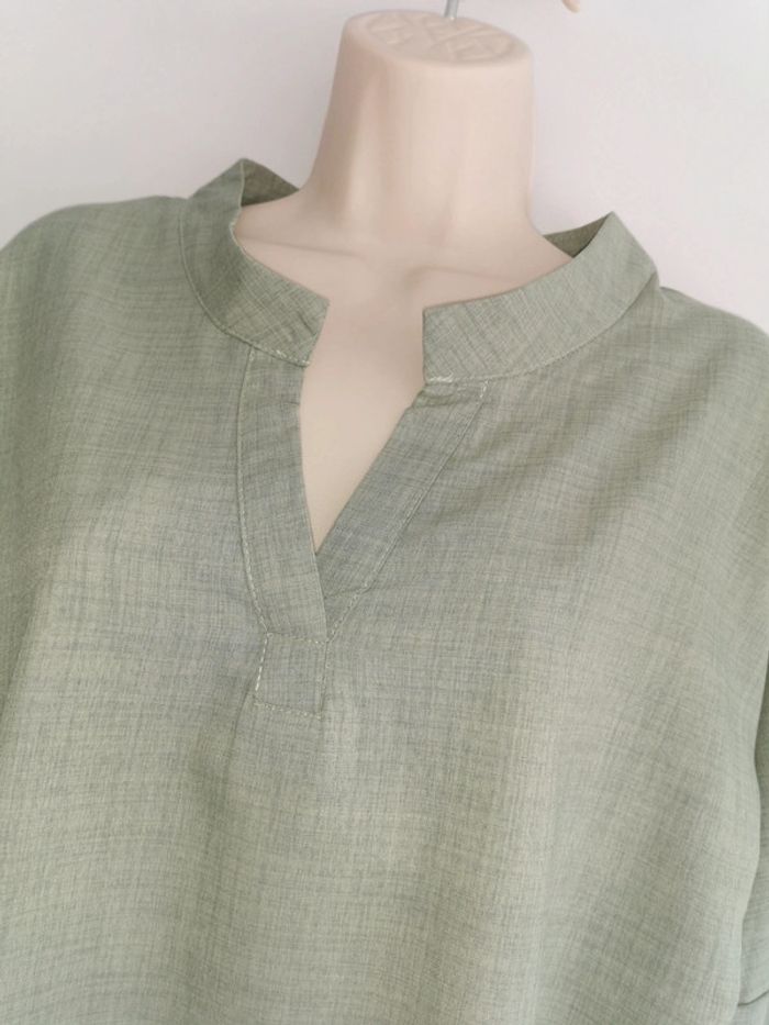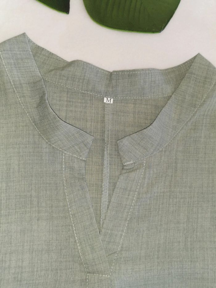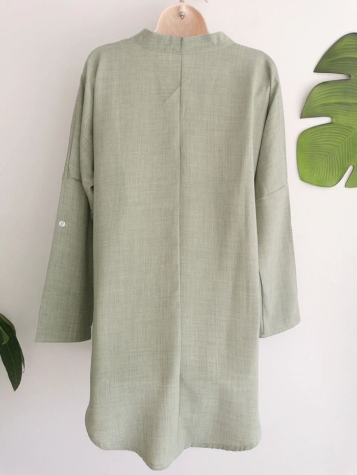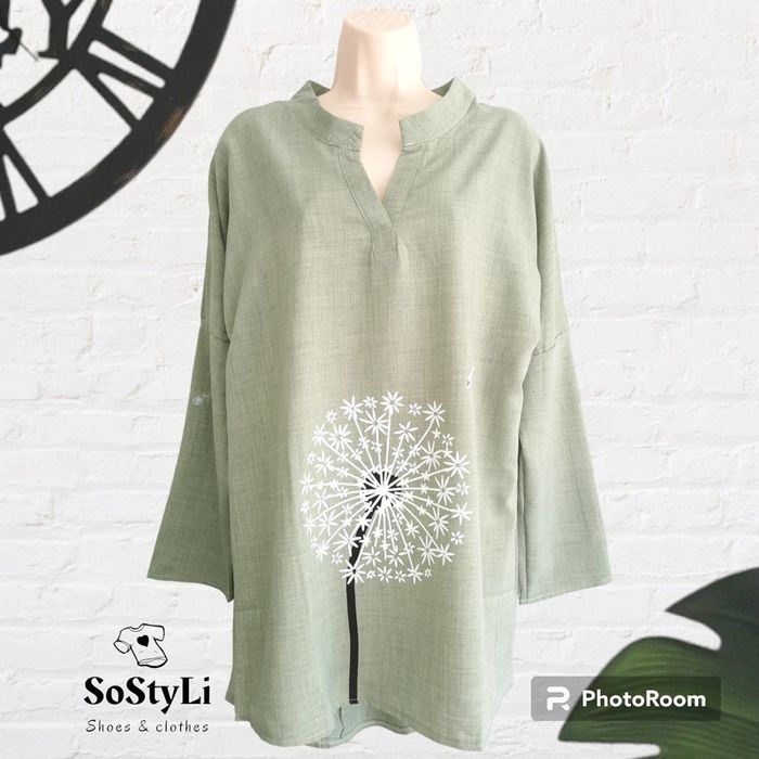 🙎‍♀️ ARTICLE NEUF SANS ÉTIQUETTE 🙎‍♀️ Tunique décontractée 👩 Taille M • Matière: 100% polyester • Tissu léger • Coupe ample oversize • Manches longues retroussables avec bouton 🔘 • Motif pissenlit • Base arrondie • Plus longue derrière que devant • Couleur: vert 🟢 chiné • 📏 Mesure sous aisselles: 52 cm • 📏 Longueur: 77 - 89 cm Parfait état👌, jamais portée #SoStyLifemmeTailleM ⬛