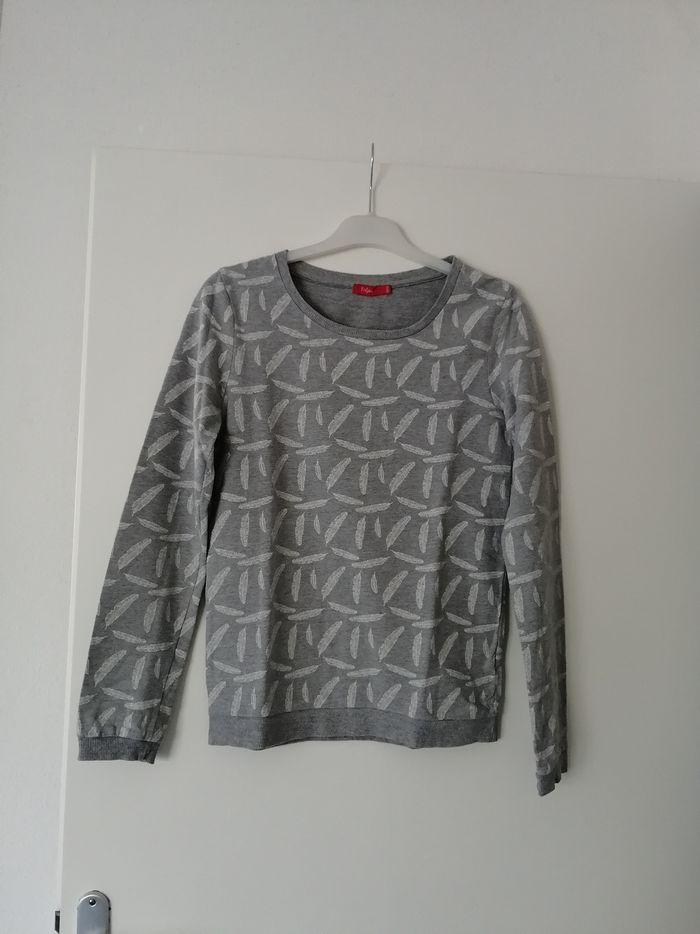 Sweat gris motifs plumes blanches Tissaia taille 34/36 - photo numéro 1