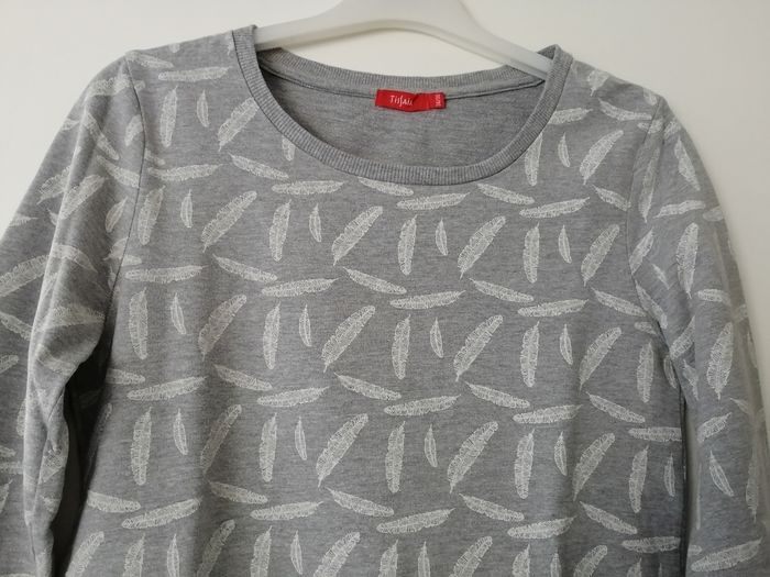 Sweat gris motifs plumes blanches Tissaia taille 34/36 - photo numéro 2