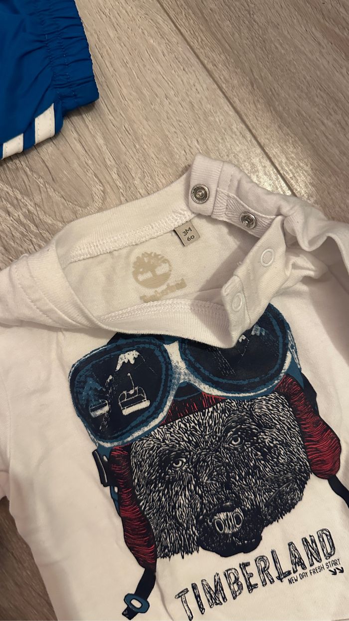 Vend ensemble adidas + 1 t-shirt manche longue timberland 3 mois Très bon état