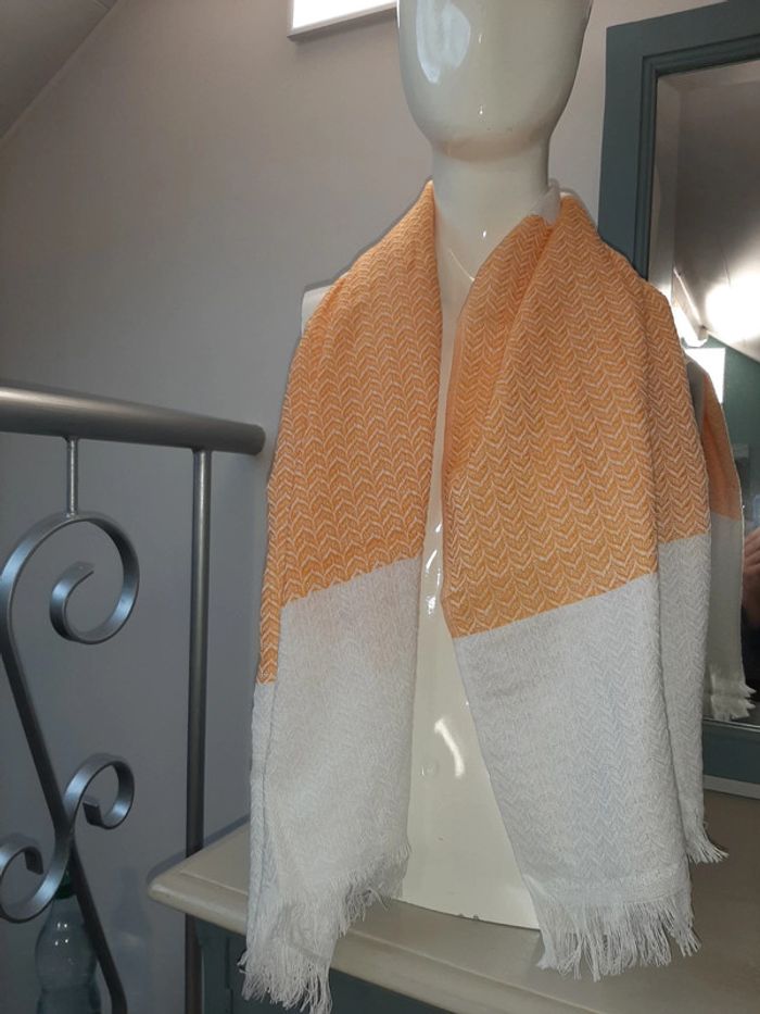 Foulard style chèche blanc et orange - photo numéro 2