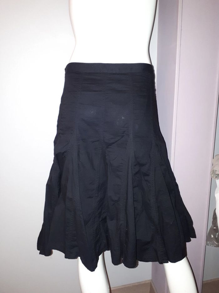 Jupe mi-longue noire évasée et volantée. 100% coton. Taille 40.