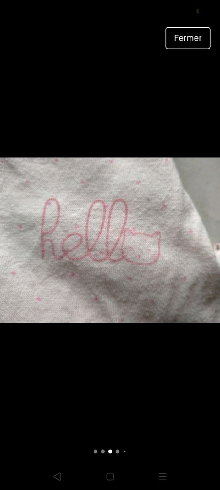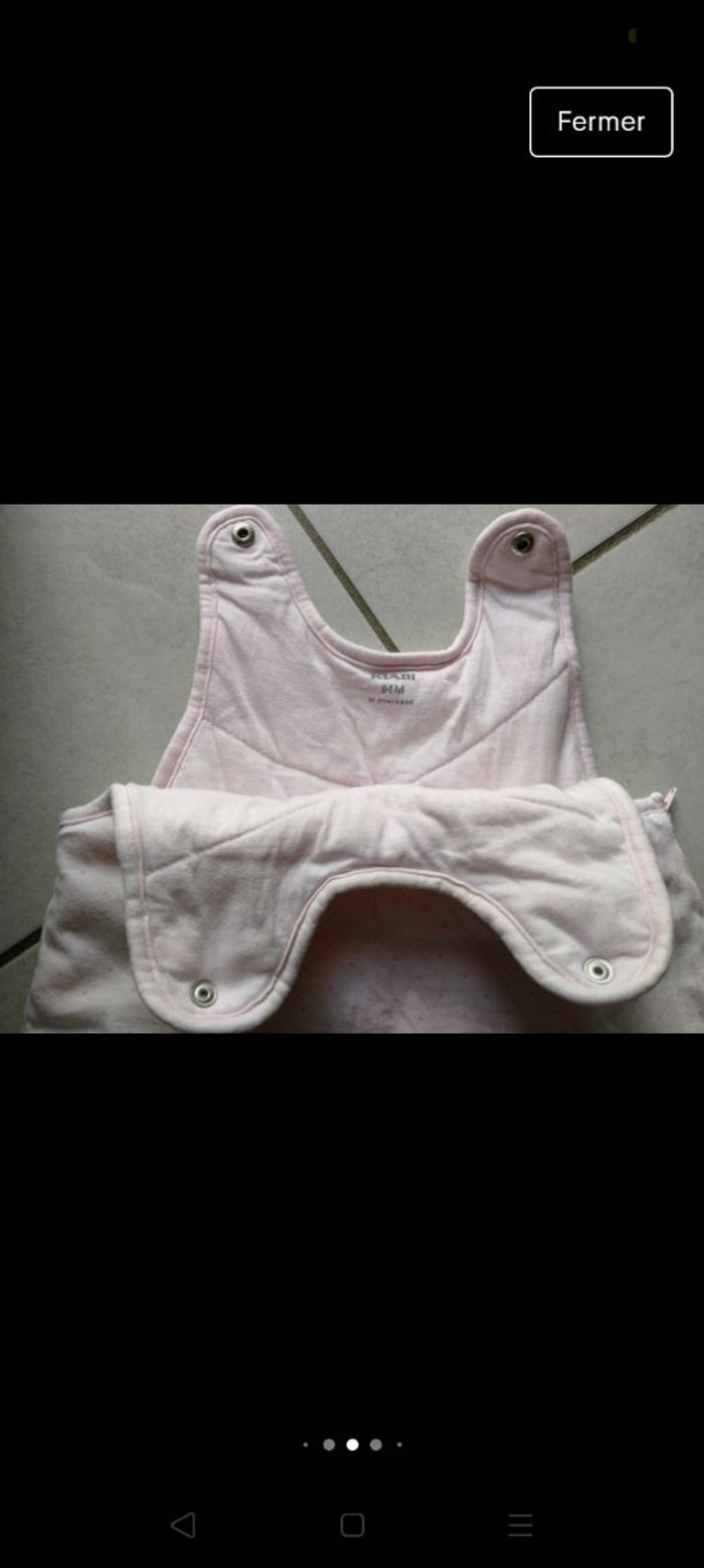 Gigoteuse chaude Kiabi. Taille 0-6 mois Rose clair avec des pois roses plus foncés. Inscription "hell🐱" sur la gauche. Se ferme avec 2 pressions au niveau des épaules. Fermeture éclaire sur le côté. 3 pressions derrière pour ajuster la taille. Très bon état. Lavé avec lessive bébé. Maison non fumeur 6 euros Envoi par mondial Relay. Remise en main propre possible sur Beauregard Vendon Riom ou Clermont Ferrand 63 D'autres articles sur v'nt'd ptitesev63
